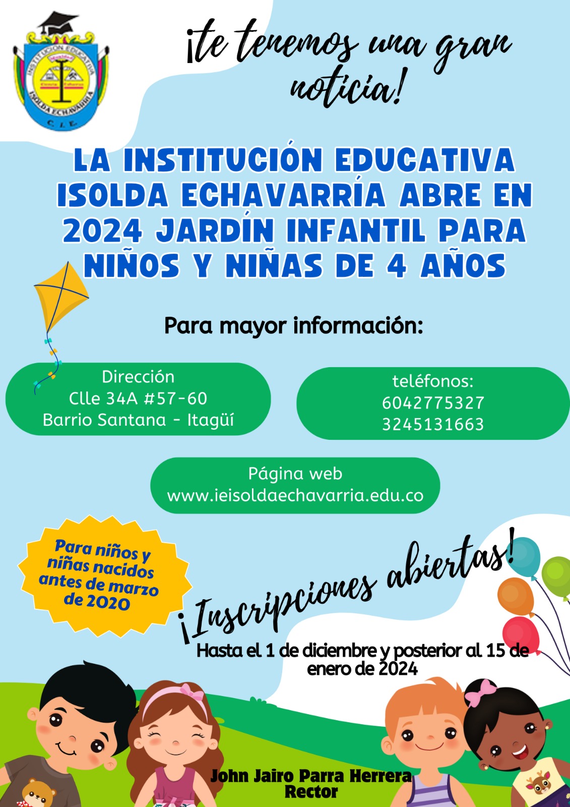 La institución educativa Isolda Echavarría abre Jardín Infantil para niños y niñas de 4 años. ...