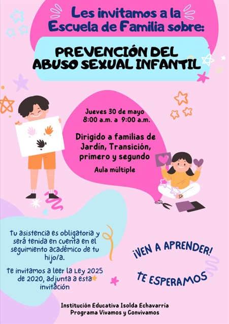 Les invitamos a la escuela de familia sobre la prevención del abuso sexual infantil, dirigido a familias de Jardín, transición, primero y segundo. ...