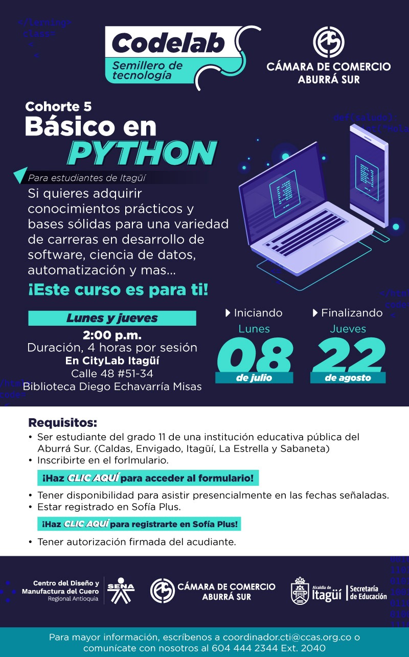 La Secretaría de Educación de Itagüí y la Cámara de Comercio Aburrá sur invitan a los estudiantes mayores de 14 años y de las IE oficiales de Itagüí a participar durante el receso vacacional en uno de... ...