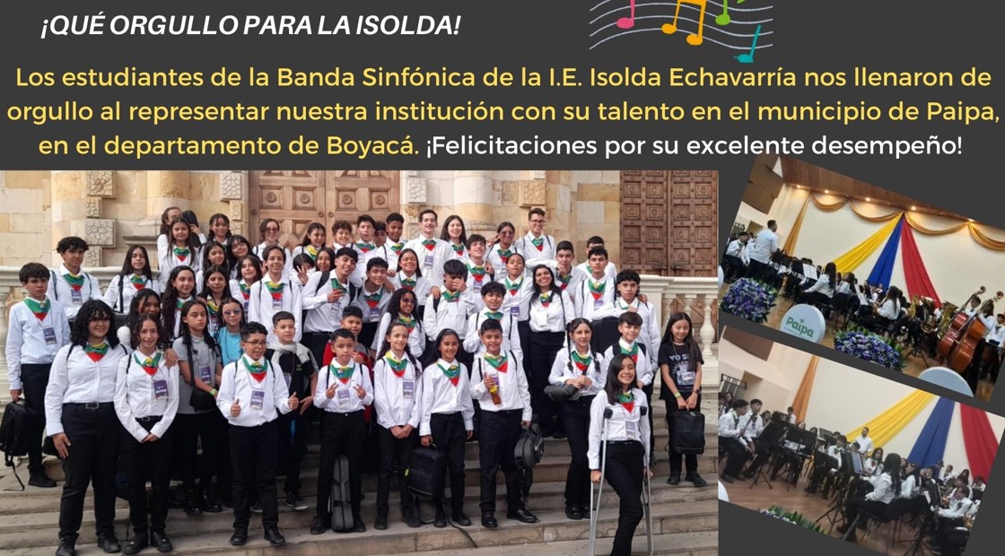 Los estudiantes de la Banda Sinfónica de la I.E. Isolda Echavarría nos representan orgullosamente y con gran talento en el municipio de Paipa, Boyacá. Felicitaciones. ...
