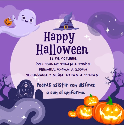 Los invitamos a disfrutar del HALLOWEEN LITERARIO BILINGÜE que se realizará el próximo 31 de Octubre en nuestra institución. PREESCOLAR: 9:45A.M A 1:45P.M - PRIMARIA: 9:45A.M A 3:00P.M - SECUNDARIA Y MEDIA: 6:10A.M A 11:50A.M. ...