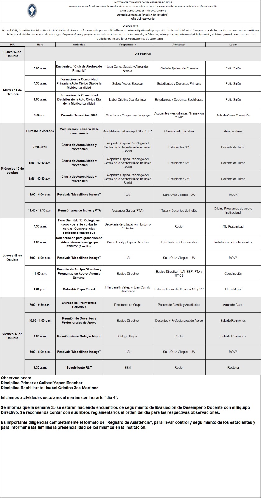 - Agenda semana 34 del 14 al 17 de octubre de 2025