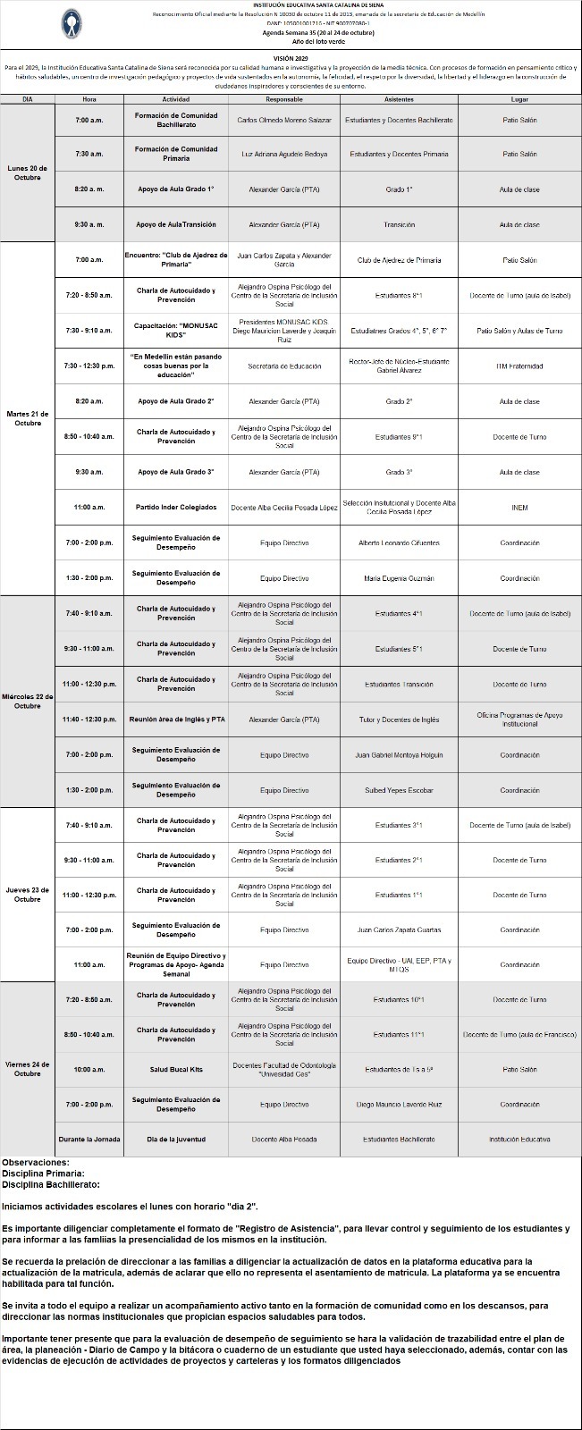 - Agenda semana 35 del 20 al 24 de octubre de 2025