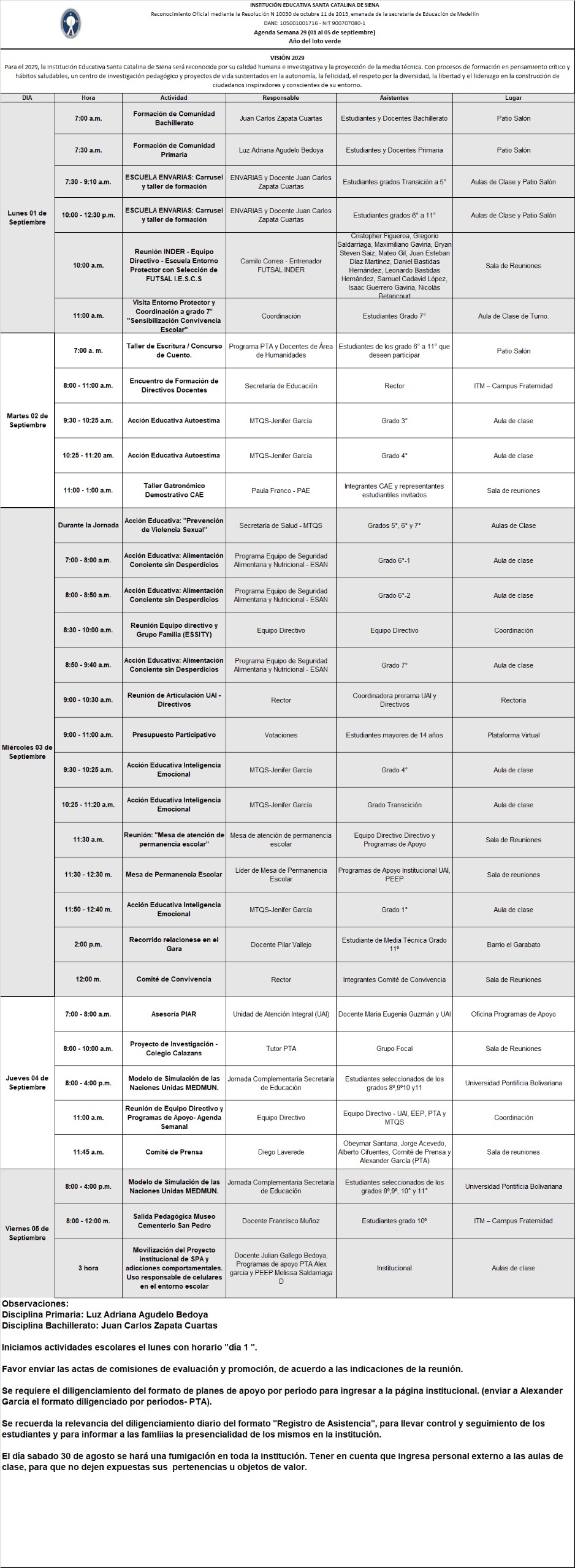 - Agenda semana 29 del 08 al 12 de septiembre de 2025