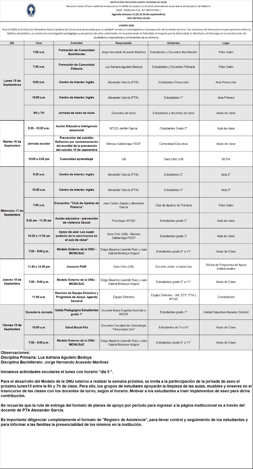 - Agenda semana 31 del 15 al 19 de septiembre de 2025