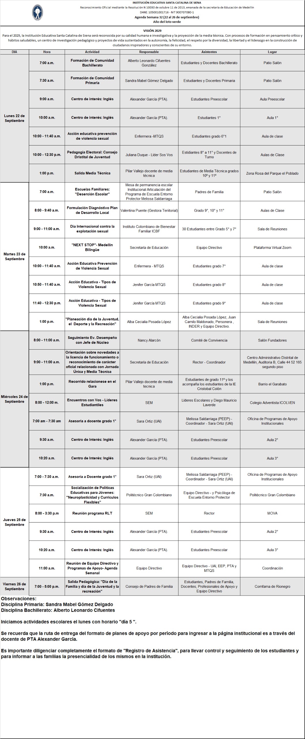 - Agenda semana 32 del 22 al 26 de septiembre de 2025