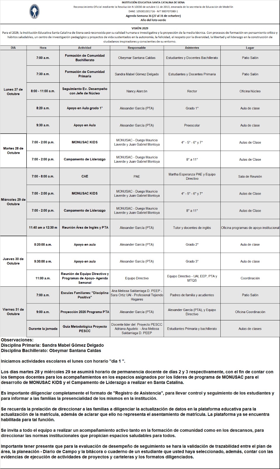 - Agenda semana 36 del 27 al 31 de octubre de 2025
