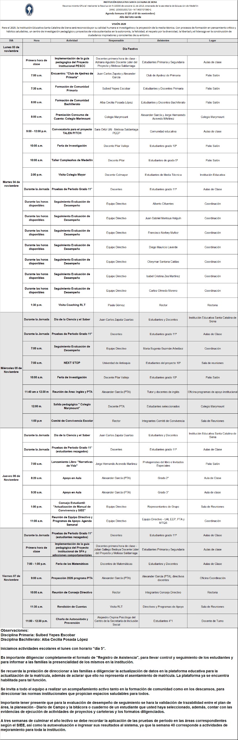 - Agenda semana 37 del 04 al 07 de noviembre de 2025