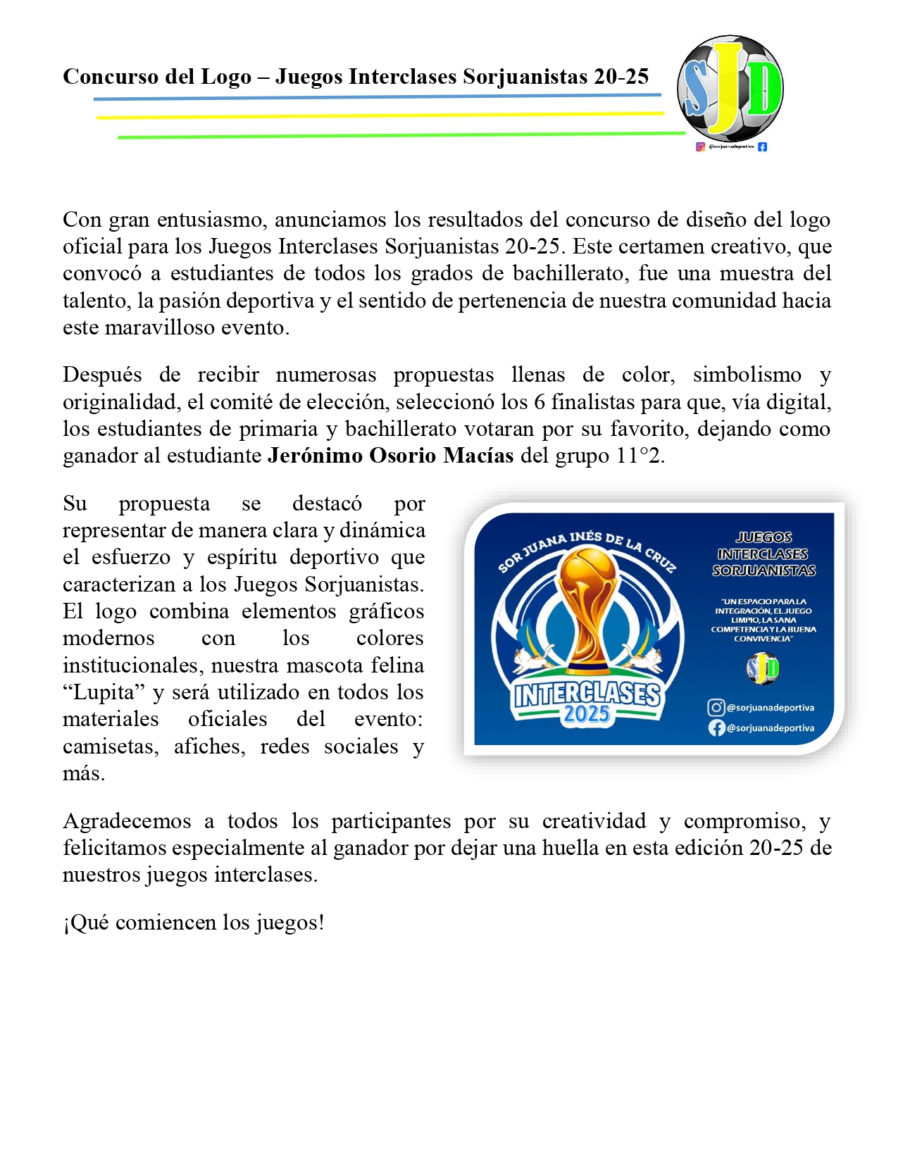 LLEGA UNA NUEVA VERSIÓN DEL CONCURSO DE LOS JUEGOS INTERCLASES SORJUANISTAS 20-25 CON GRANDES PREMIOS E INCENTIVOS